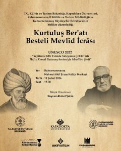 Kapadokya Üniversitesi, 6 Şubat.2023 tarihinde yaşanan büyük deprem felaketinin anılması ve 12 Şubat Kahramanmaraş’ın Kurtuluşu vesilesiyle, kültürel ve manevi mirasın yaşatılmasına yönelik çalışmalarına bir yenisini ekleyerek “Kurtuluş Ber’atı Besteli Mevlîd İcrâsı” programını Kahramanmaraş’ta gerçekleştirecek.