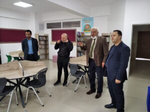 KYD Başkanı Dr. Harun Çolak, Başkan Yardımcısı İsrafil Baran ve Genel Sekreter İsmail Hilal, “Kütüphanesiz Okul Kalmasın” projesine destek vermek için Hacı Asım Atabilen İlkokulu’nu ziyaret ederek proje kapsamında oluşturulan kütüphaneyi inceledi.