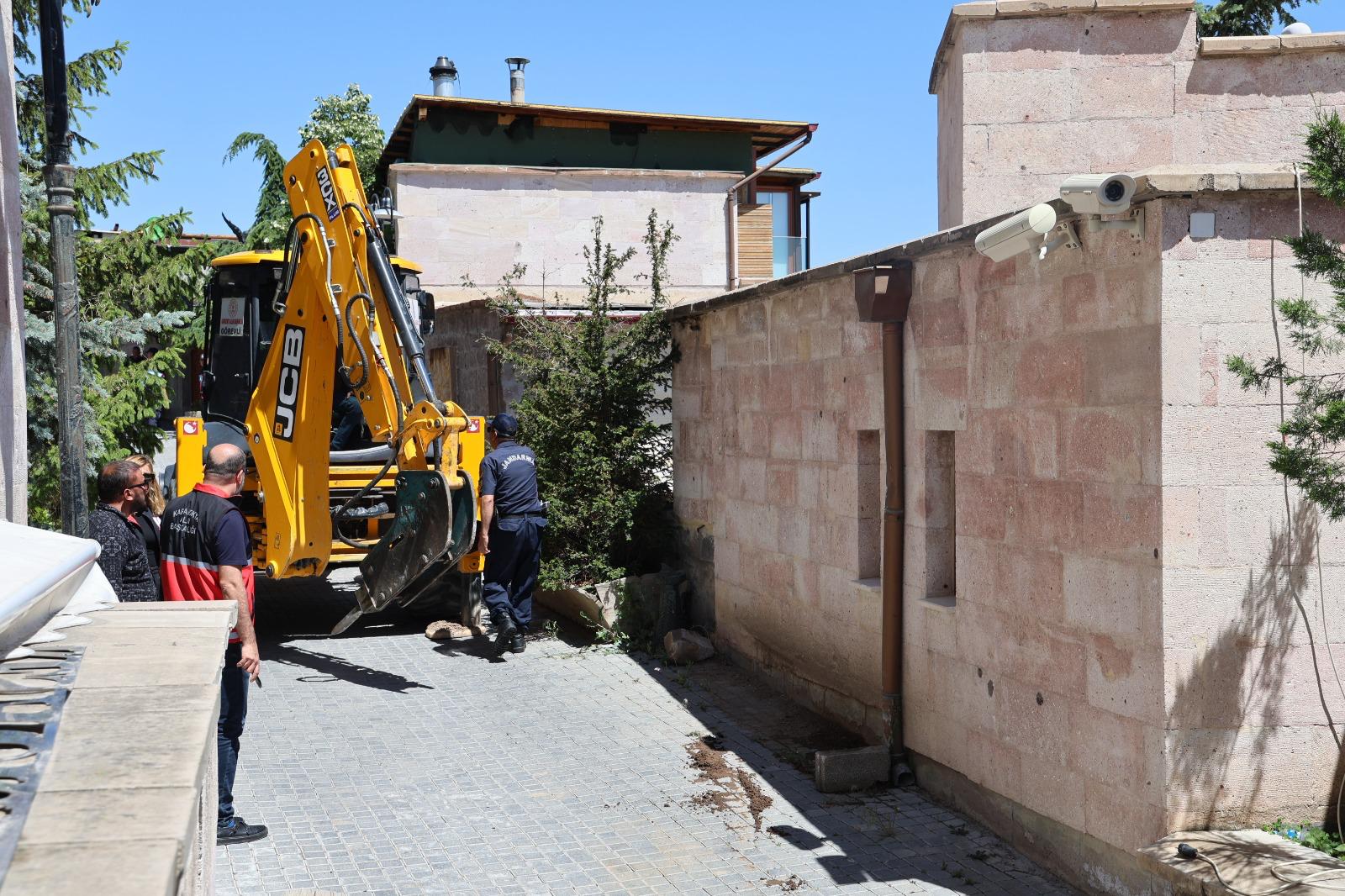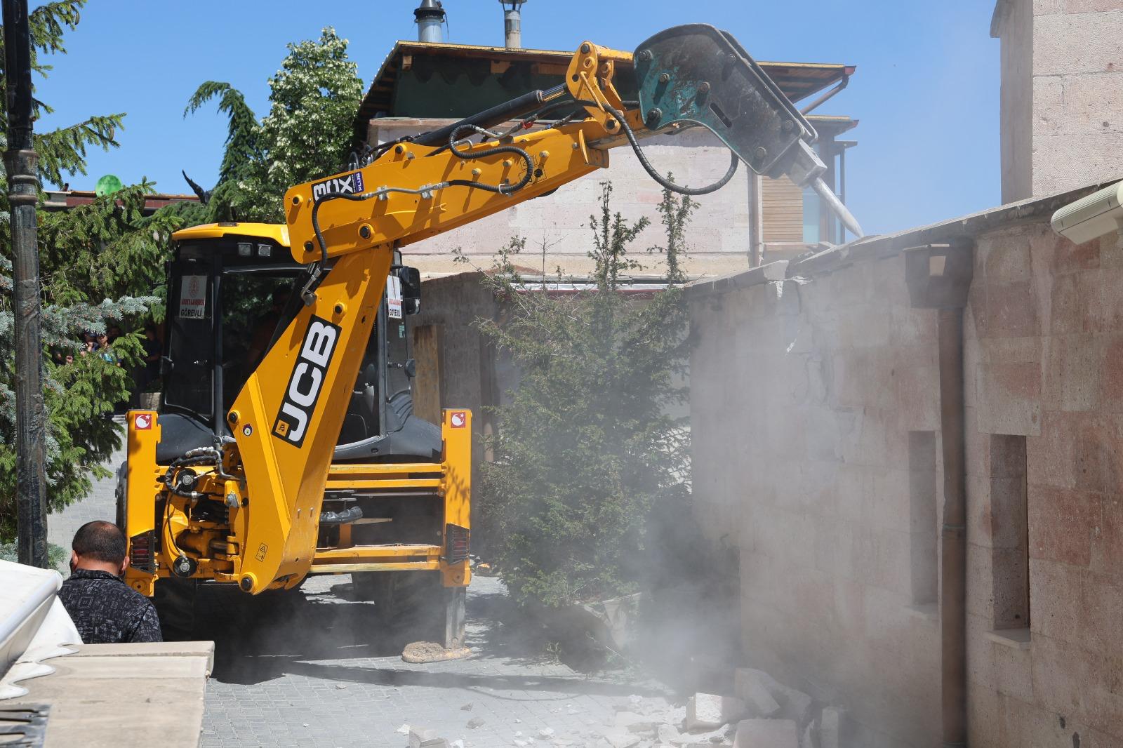 Jandarma ekiplerinin geniş güvenlik önlemleri aldığı alanda Kapadokya Alan Başkanlığına bağlı iş makineleri ve personelleri kontrollü olarak yıkımı gerçekleştirdi.