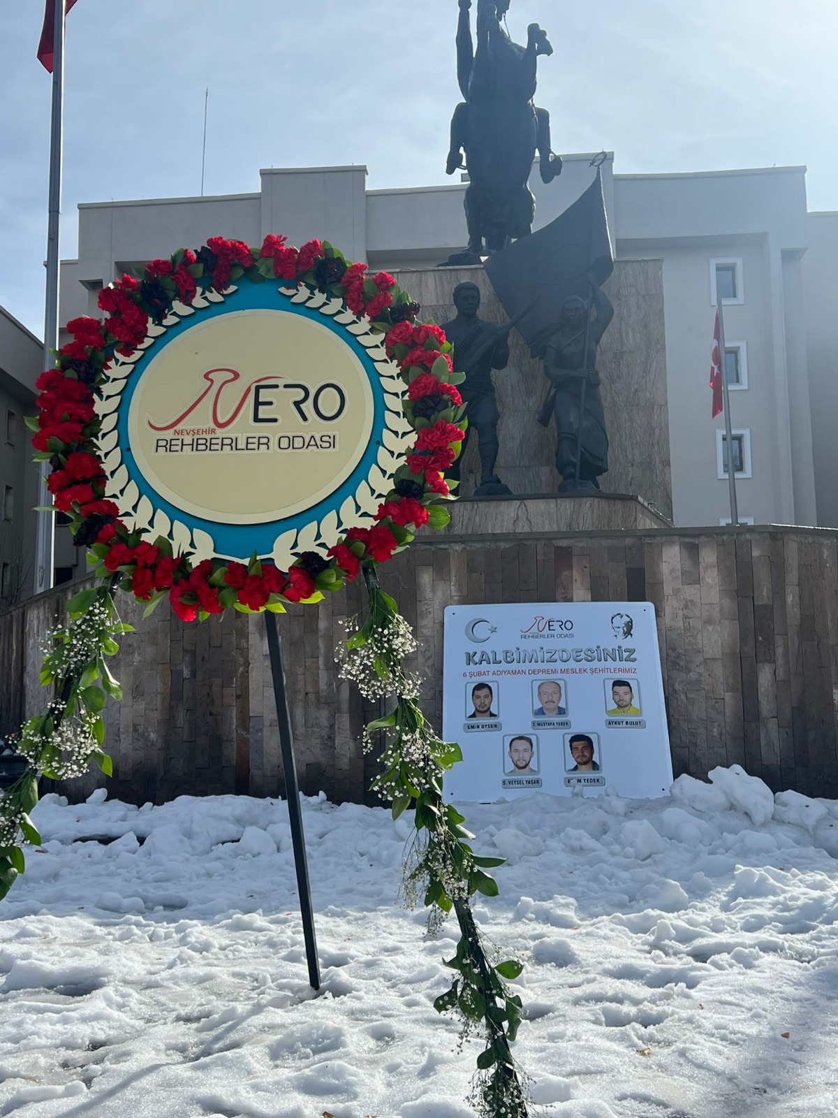 Türkiye Rehberler Birliği tarafından düzenlenen Meslek İçi Eğitim Seminerine katılmak için Türkiye’nin değişik illerinden Adıyaman’a giden rehberler Kahramanmaraş Merkezli depreme, Adıyaman’da yıkılan otelde yakalandı. Otelde 43 kişilik rehber grubundan 30 kişi yaşamını yitirdi. Yaşamını yitiren rehberlerden Emin Uysun, Aykut Bulut, Turgut Mustafa Yedek, Sefa Veysel Yaşar ve Ethem Yedek Nevşehir Rehberler Odası üyesiydi. 21 Şubat Rehberler Günü dolayısıyla Nevşehir Rehberler Odası tarafından depremde hayatını kaybeden meslektaşları için bir anma etkinliği düzenlendi. Nevşehir Valiliği önündeki Atatürk Heykeli önünde yapılan etkinliğe katılan rehberler önce Atatürk heykelini çelenk bırakarak kaybettikleri meslektaşları için 1 dakikalık saygı duruşunda bulundu. Rehberler daha sonra kaybettikleri meslektaşlarının fotoğraflarının yanına kırmızı karanfil bıraktı. Bu yıl 21 Şubat rehberler gününü buruk bir şekilde kutladıklarını söyleyen Nevşehir Rehberler Odası Başkanı Özay Onur yaptığı açıklamada; Adıyaman’da kaybettikleri 5 arkadaşının acısını yaşadıklarını söyledi. Onur; “Bu gün 21 Şubat rehberler günü. Her yıl 21 Şubatın coşkusunu yaşarken 5 arkadaşımızı Adıyaman’da kaybetmenin acısını yaşıyoruz. Bu acımızı burada depremde kaybettiğimiz 5 canımızın hatıralarını yaşatmak için 21 Şubat etkinliğimizi bu şekilde düzenledik. Bütün hayatını kaybeden ailelere başsağlığı diliyoruz. Arkadaşlarımızın acısını yaşıyoruz” şeklinde konuştu.