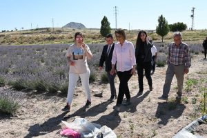 Nevşehir Valisi İnci Sezer Becel, İl Tarım ve Orman Müdürlüğünce KOP Kapsamında projelendirilerek uygulanan “Kapadokya’dan Hoş Koku ve Sağlık Yayılıyor” Projesi kapsamında oluşturulan lavanta bahçesinde incelemelerde bulundu.