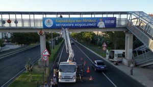 Nevşehir Belediyesi tarafından Cevher Dudayev Mahallesi’nde bulunan bir üst geçide geçtiğimiz haftalarda ‘Kapadokya’nın Merkezi Nevşehir’e Hoş Geldiniz’ afişi asıldı. Söz konusu afiş bugün öğle saatlerinde Kayseri’den gelen Karayolları Bölge Müdürlüğü görevlilerince yerinden söküldü.