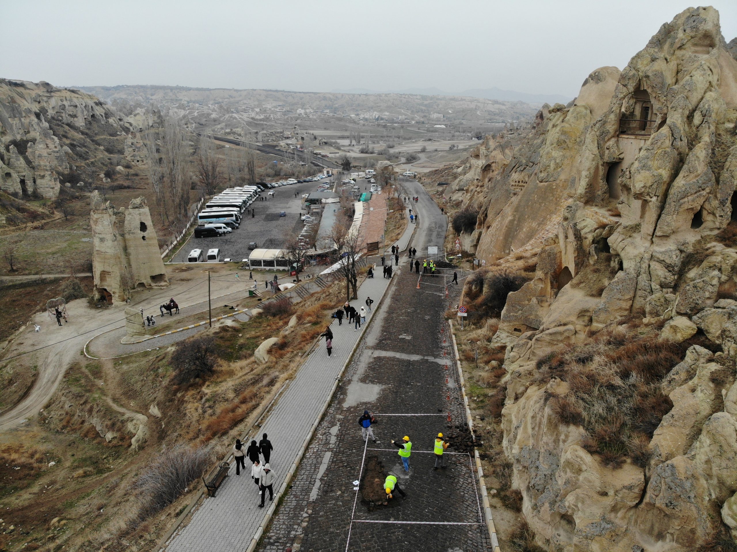Göreme Açık Hava Müzesi içerisinden geçen turizm yolunun araç trafiğine kapatılmasının ardından Açık Hava Müzesi çevresinde arkeolojik kazı çalışmaları bugün başladı.