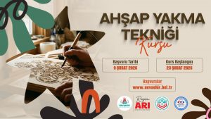 Ahşap Yakma Tekniği Kursu; 09 Şubat 2026 Pazartesi gününden itibaren alınmaya başlayacak olan başvurular sonrası kurs 23 Şubat 2026 tarihinde başlayıp 14 Mayıs 2026 tarihinde tamamlanacak. Kurs hafta içi her gün 13.00 – 16.00 saatleri arasında yapılacak.
