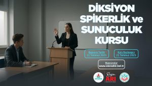 Diksiyon, Spikerlik ve Sunuculuk Kursu; 21 Temmuz 2025 tarihinde başlayıp 02 Eylül 2025 tarihinde tamamlanacak. Kurs Pazartesi, Salı, Çarşamba günleri 09.00 – 12.00 saatleri arasında yapılacak.
