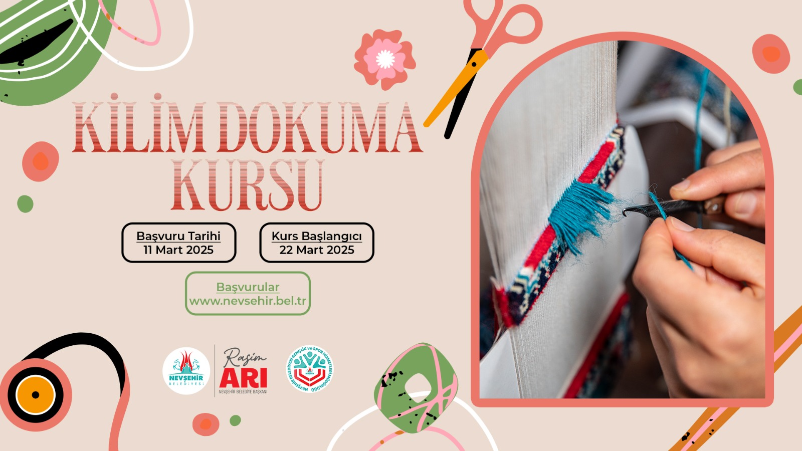 Kilim Dokuma kursuyla geleneksel el sanatlarının yaşatılması ve gelecek nesillere aktarılması hedefleniyor. Nevşehir Belediyesi web sitesinde üzerinden yapılacak olan kurs başvuruları 11 Mart 2025 tarihi itibariyle başlarken Kilim Dokuma Kursu 22 Mart 2025 tarihinde başlayacak.