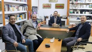 Kapadokya Turistik Otelciler ve İşletmeciler Derneği (KAPTİD) Başkanı Teyfik Ölmez ve Nevşehir Rehberler Odası (NERO) Başkanı Özay Onur, 10 Ocak Çalışan Gazeteciler Günü dolayısıyla Nevşehir Gazeteciler Cemiyeti (NGC) Başkanı Bayram Ekici’yi ziyaret etti.