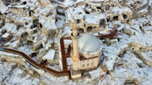Nevşehir Kalesi etrafındaki dünyanın en büyük yamaç yerleşim merkezi olarak kabul edilen ve 2020 yılı ortalarında Nevşehir Belediyesi tarafından turizme kazandırılan Kayaşehir’de beyaz örtü ile kaplandı.
