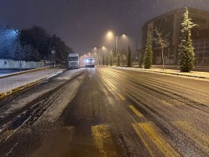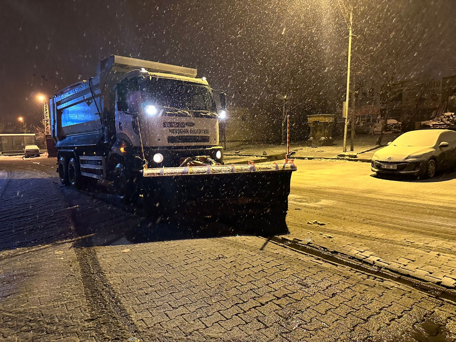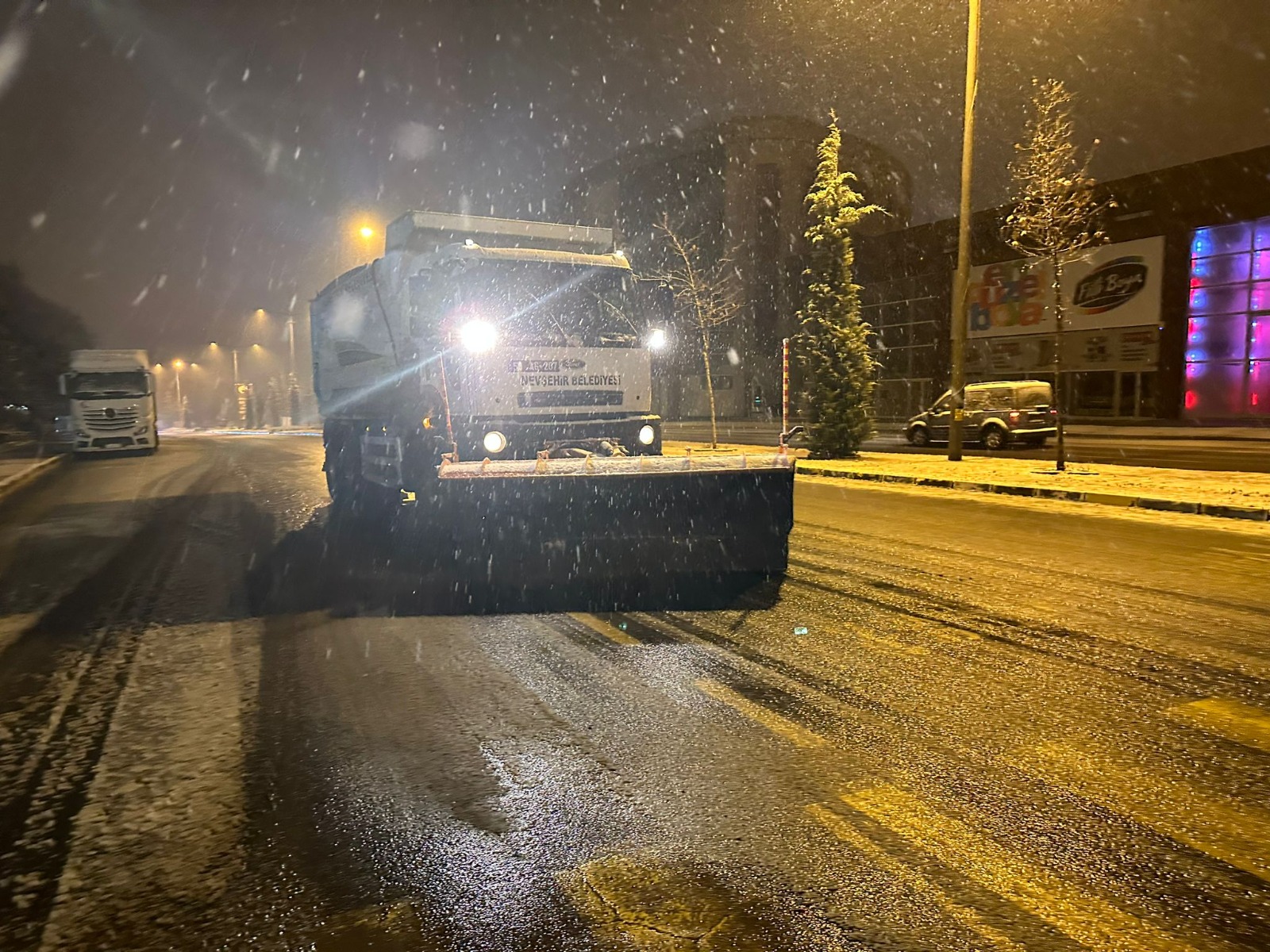 Nevşehir’de uzun süredir beklenen ve akşam saatlerinden itibaren etkili olmaya başlayan kar yağışı ile birlikte, belediye ekipleri de teyakkuza geçti. Yağışın ulaşımı olumsuz etkilememesi için ana güzergahlar ve ara sokaklarda tuzlama ve temizlik çalışması yapan belediye ekipleri, çalışmalarını aralıksız sürdürecek.