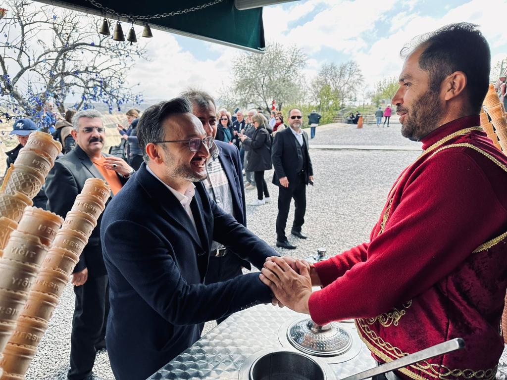 Göreme Açıkhava müzesinde bulunan dondurmacı vatandaşla sohbet eden Yanar, vatandaşın Cumhurbaşkanı Recep Tayyip Erdoğan için yazdığı şiiri dinledi.