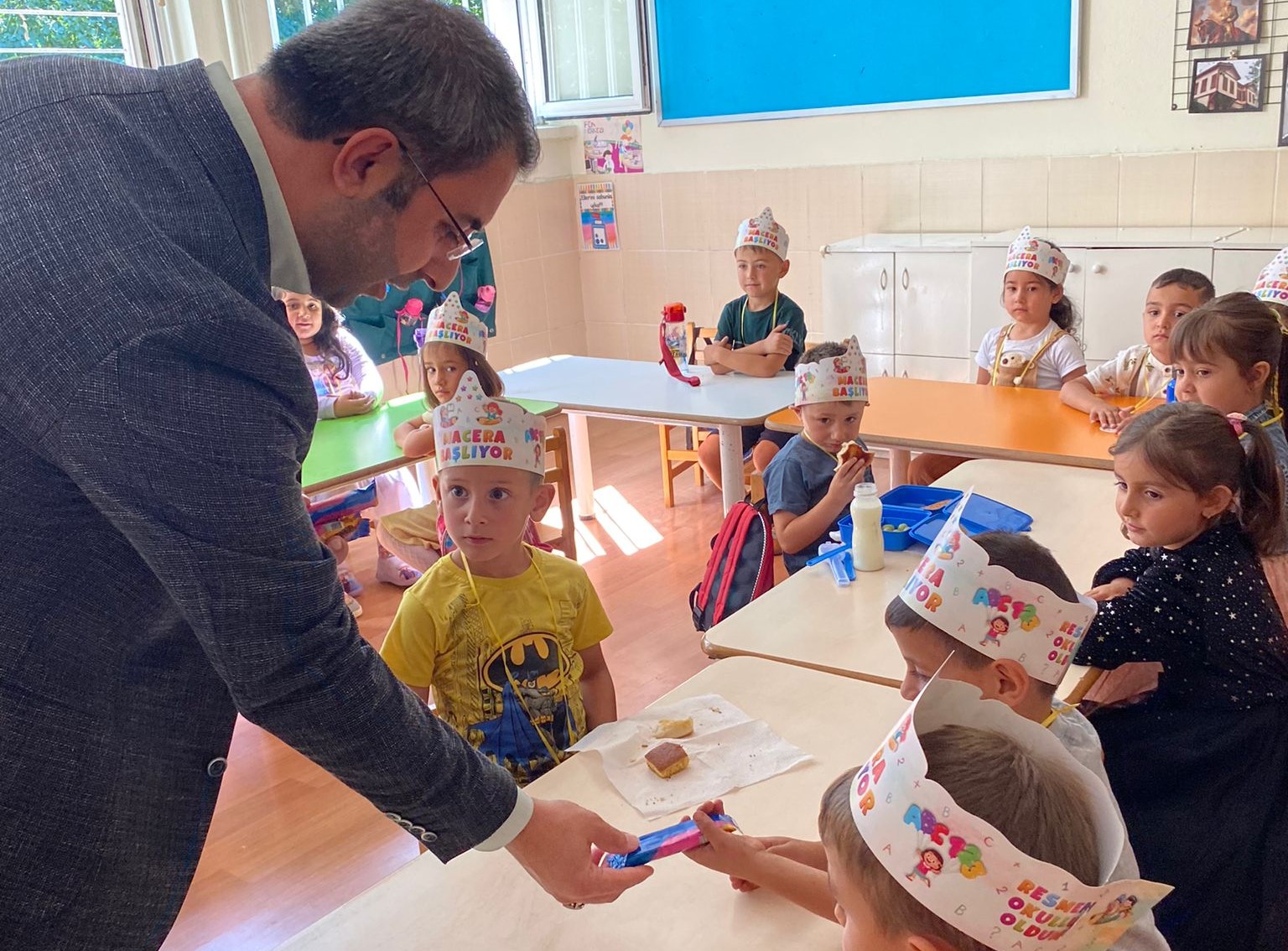 Yeni Eğitim ve Öğretim Yılına Tatlı ile başlayan minik öğrenciler de Başkan Güneş’e teşekkür etti.