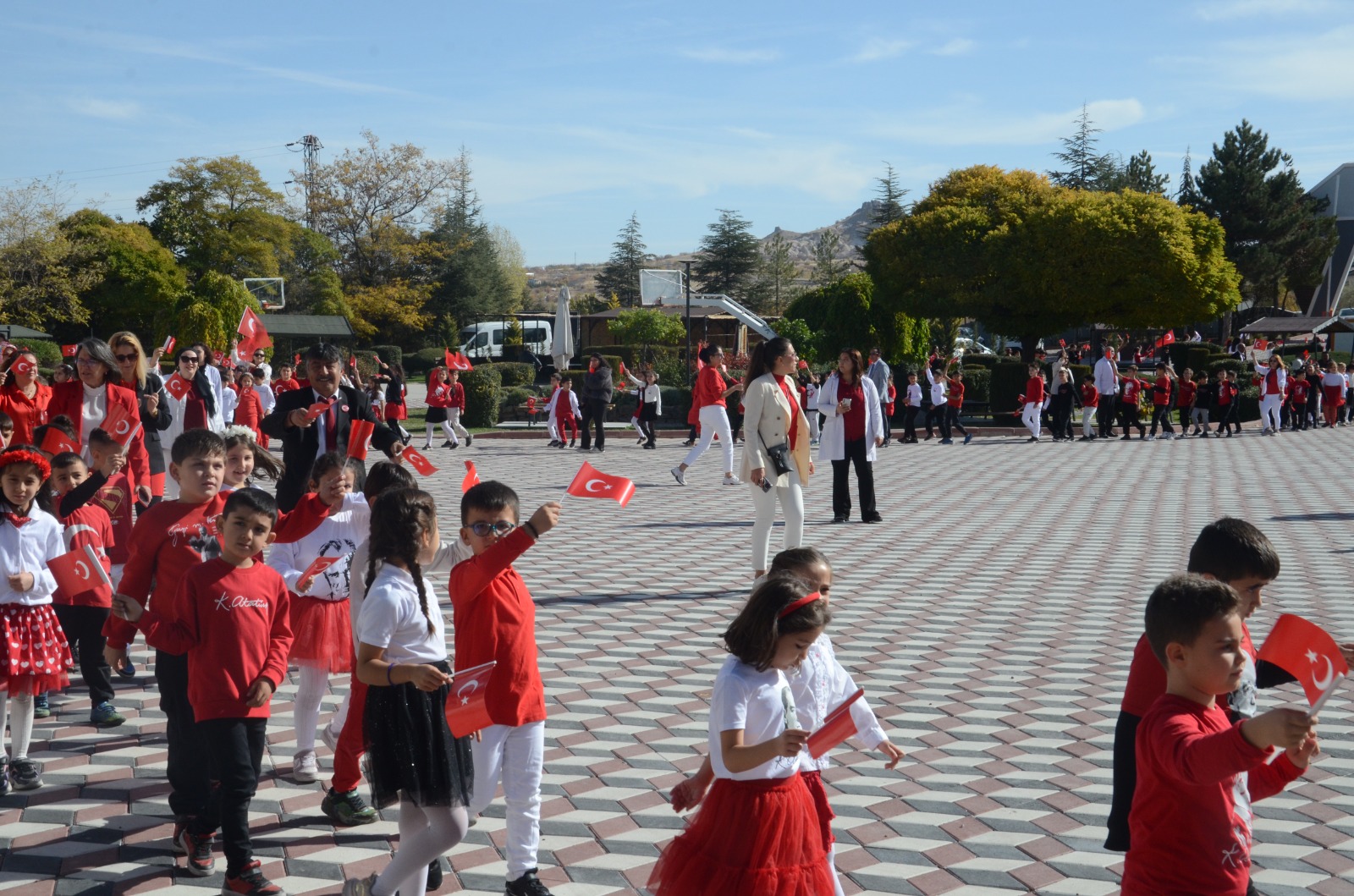 Kutlamalar kapsamında İlköğretim Okulu öğrencileri kampüs içerisinde yürüyüş düzenledi.