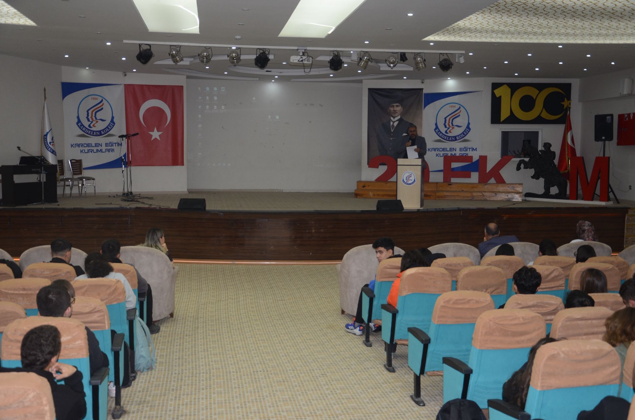 Kardelen Eğitim Kurumları konferans salonunda düzenlenen konferansa konuşmacı olarak NEVÜ Atatürk İlkeleri ve İnkılap Tarihi Bölümü Öğretim Görevlisi Dr. Ahmet Korkmaz katıldı.