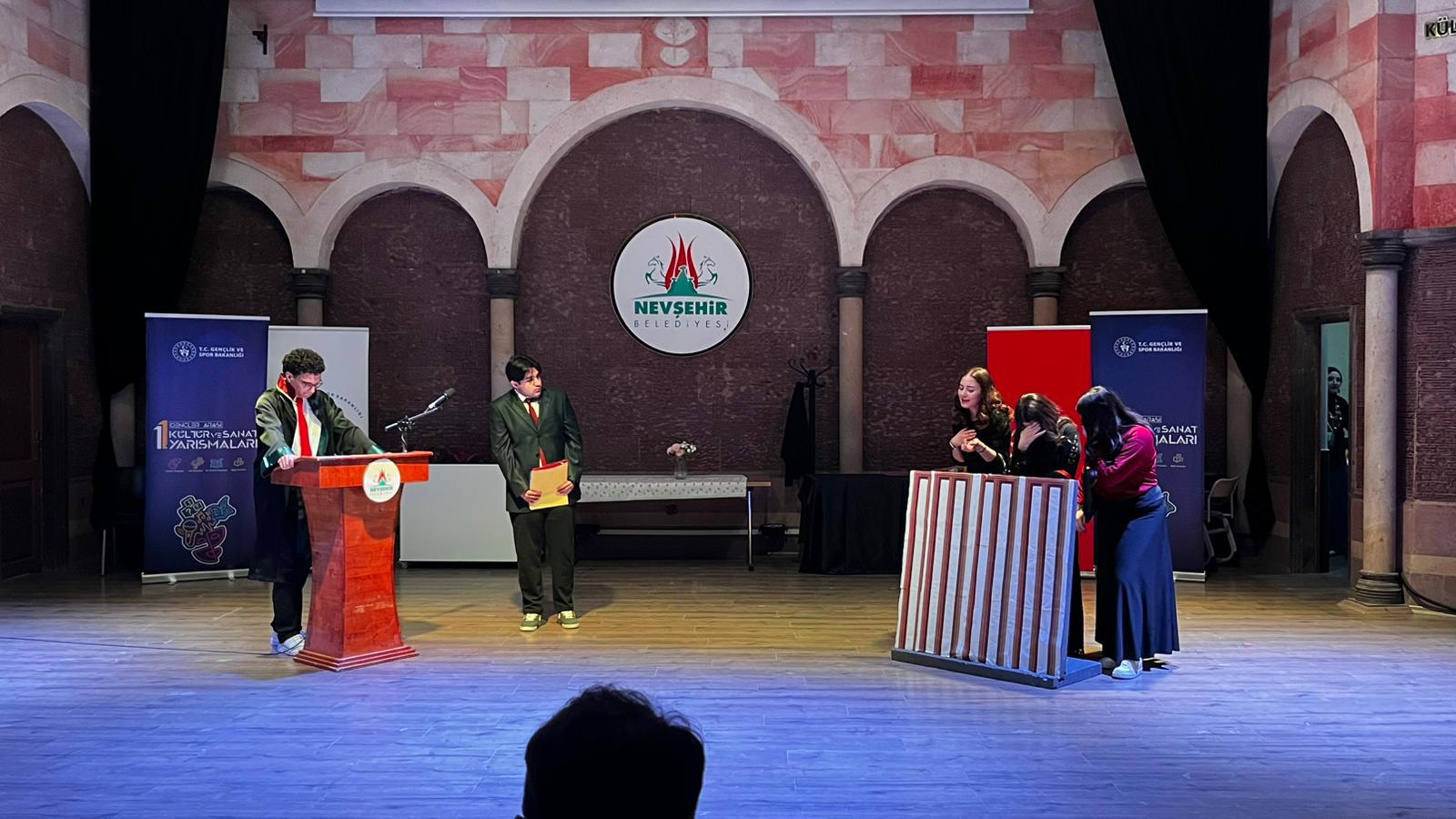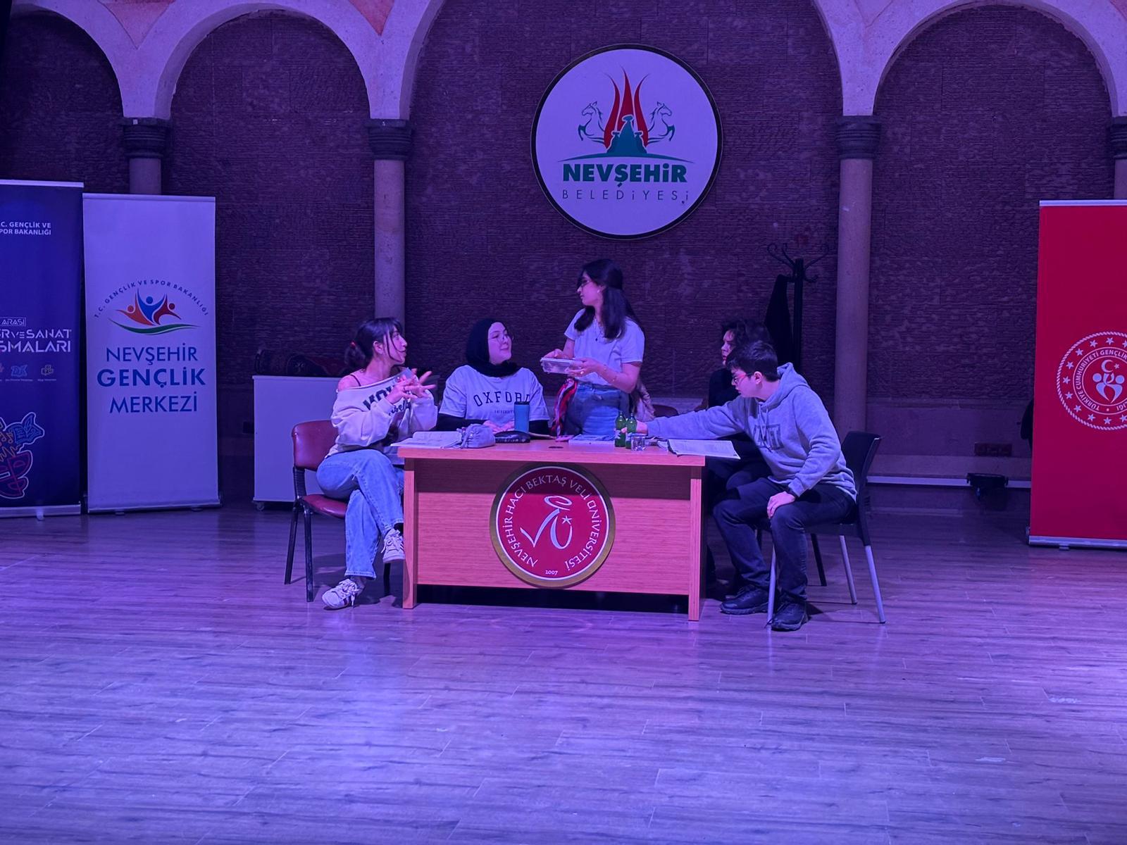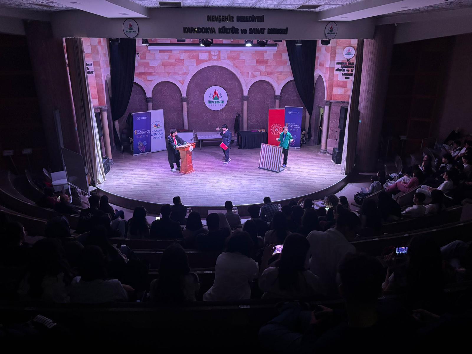 Kapadokya Kültür ve Sanat Merkezinde gerçekleştirilen ve Okulumuzdan 4 ekibin tiyatrolarını sahnelediği yarışmada sırasıyla “Omzumuzda Görünmeyen Veliler”, “Geçmiş ve Geleceğimiz”, “Sıradan Günler” ve “Şevketin İlk Günü” oyunları seyirciden büyük alkış aldı.
