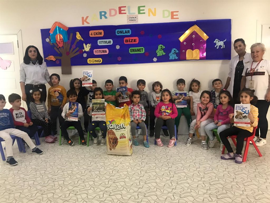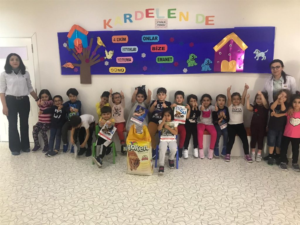 Minik Kardelenler ise cep harçlıklarını biriktirerek kedi ve köpek maması aldı. 2. Sınıf öğrencileri ise hayvan dostlarını sınıflarına getirerek onları daha yakından tanıdı.