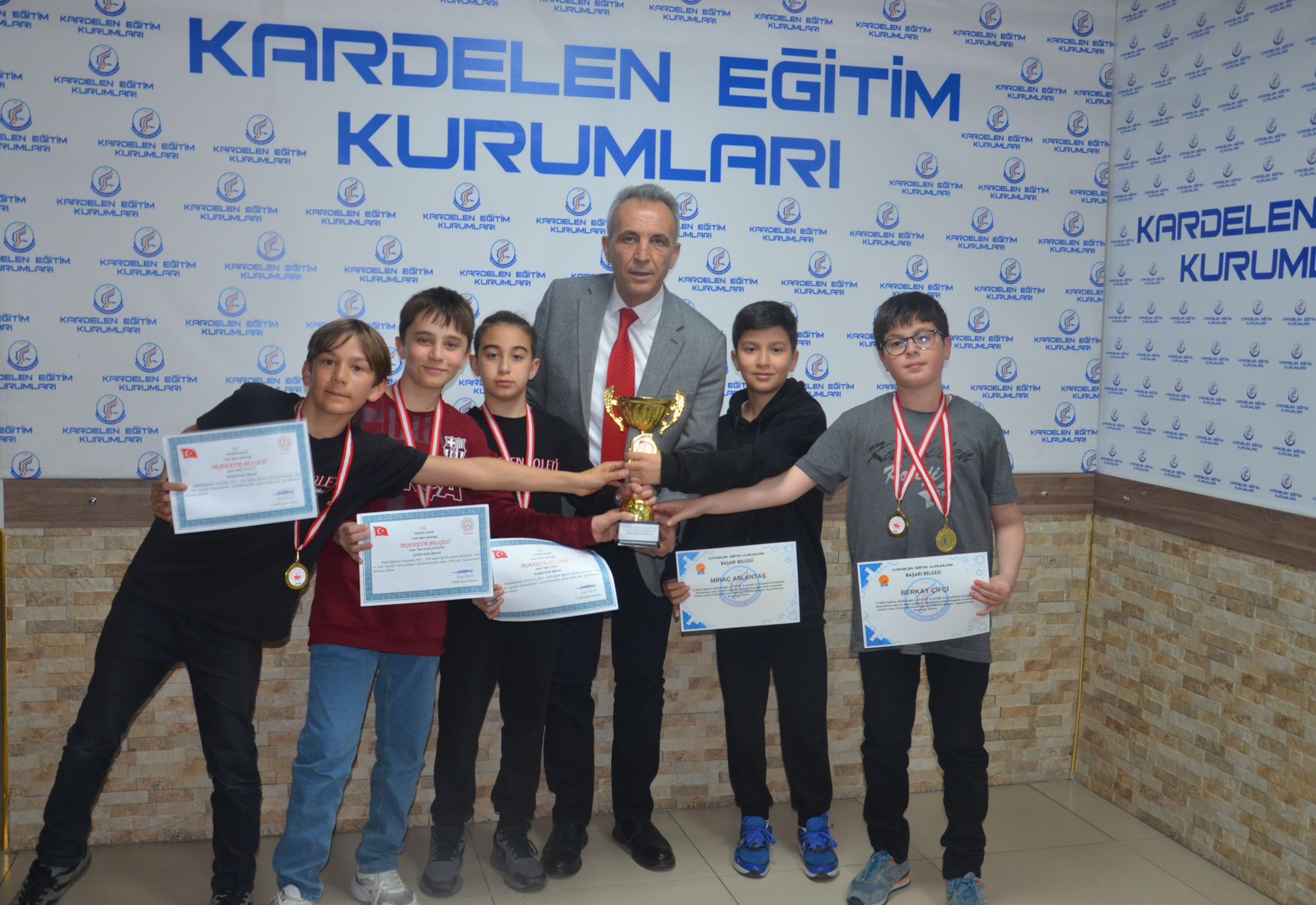Turnuvaya damgasını vuran Kardelenli öğrenciler kupa ve madalyalarını düzenlenen törenle aldı.