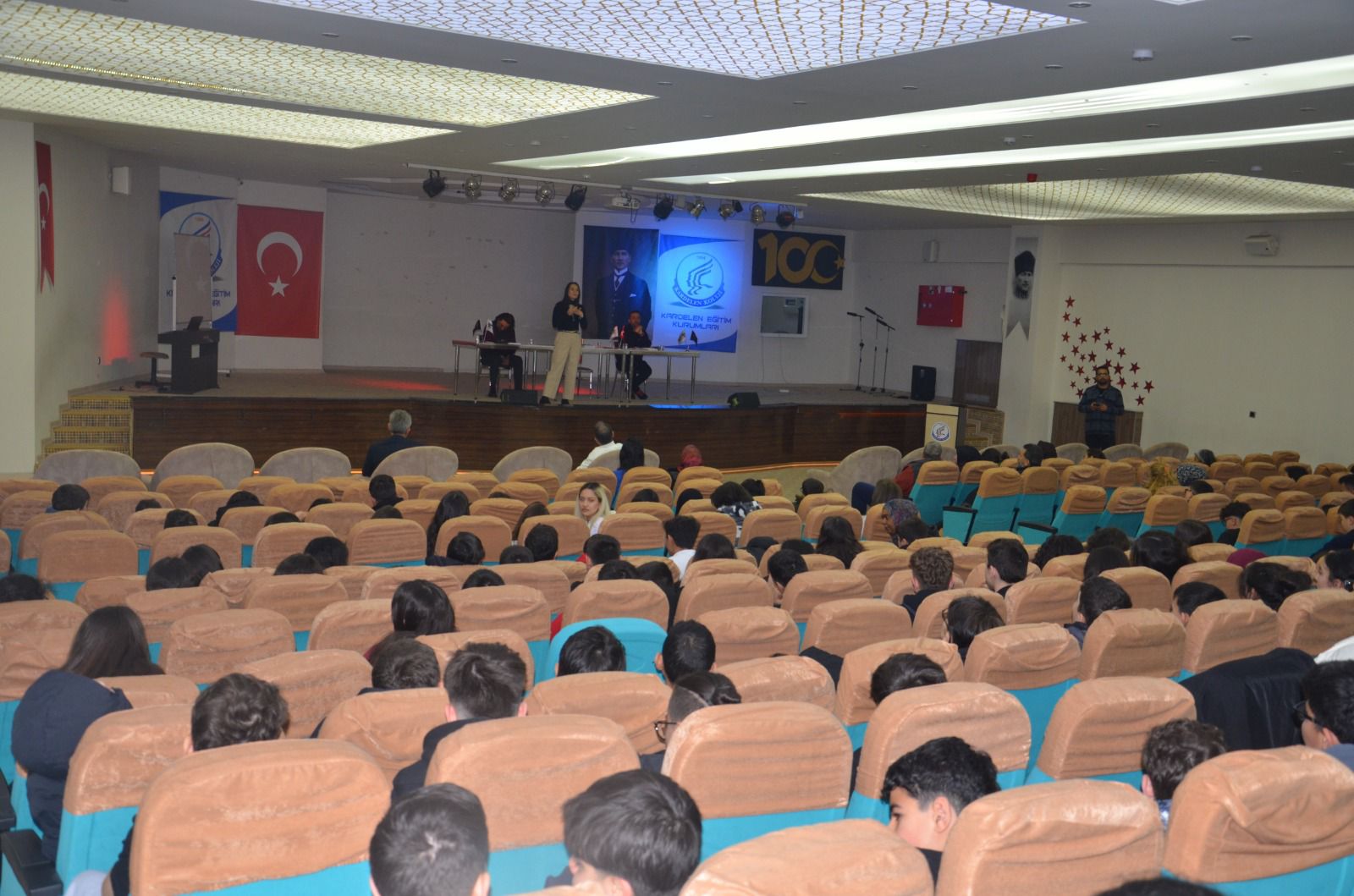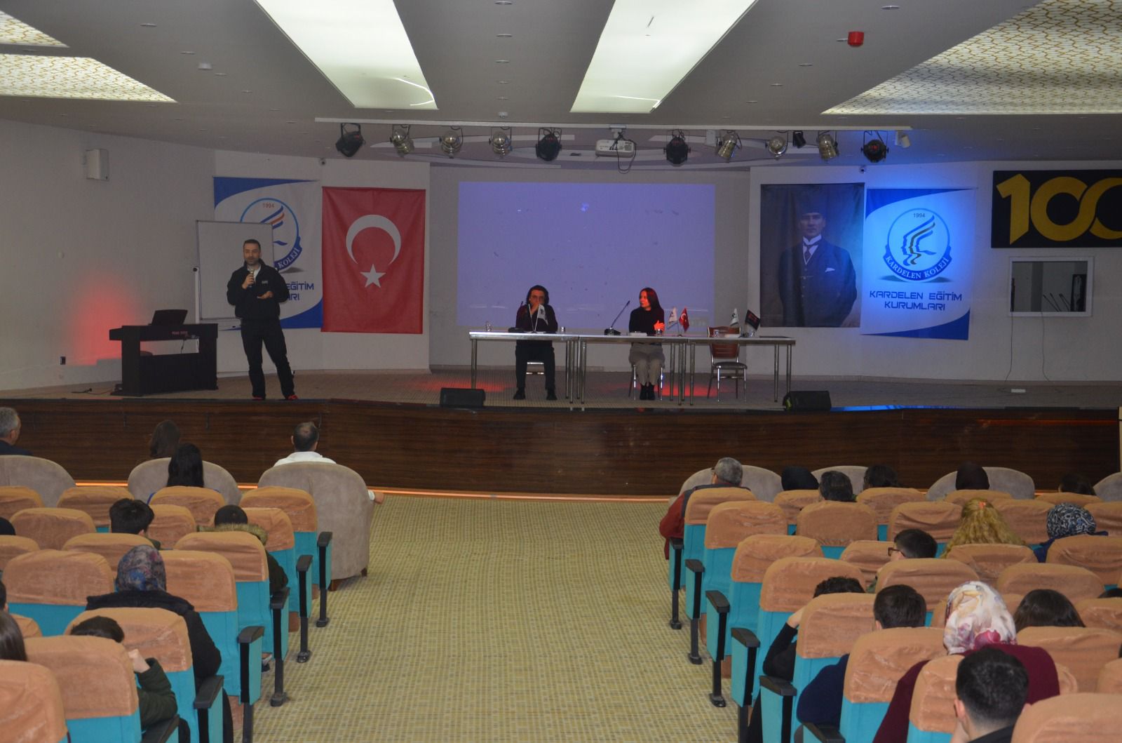 Kardelen Eğitim Kurumları konferans salonunda düzenlenen ve velilerin de katıldığı seminerde matematik yazarı Serkan Kebenç, eğitim koçu Osman Sarı ve fen bilimleri yazarı Merve Er Aslan öğrencilerle buluştu.