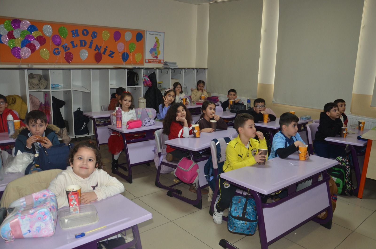 Konferans salonunda düzenlenen etkinliğe 1, 2, 3 ve 4. sınıfların tamamı ile öğretmenler katıldı.