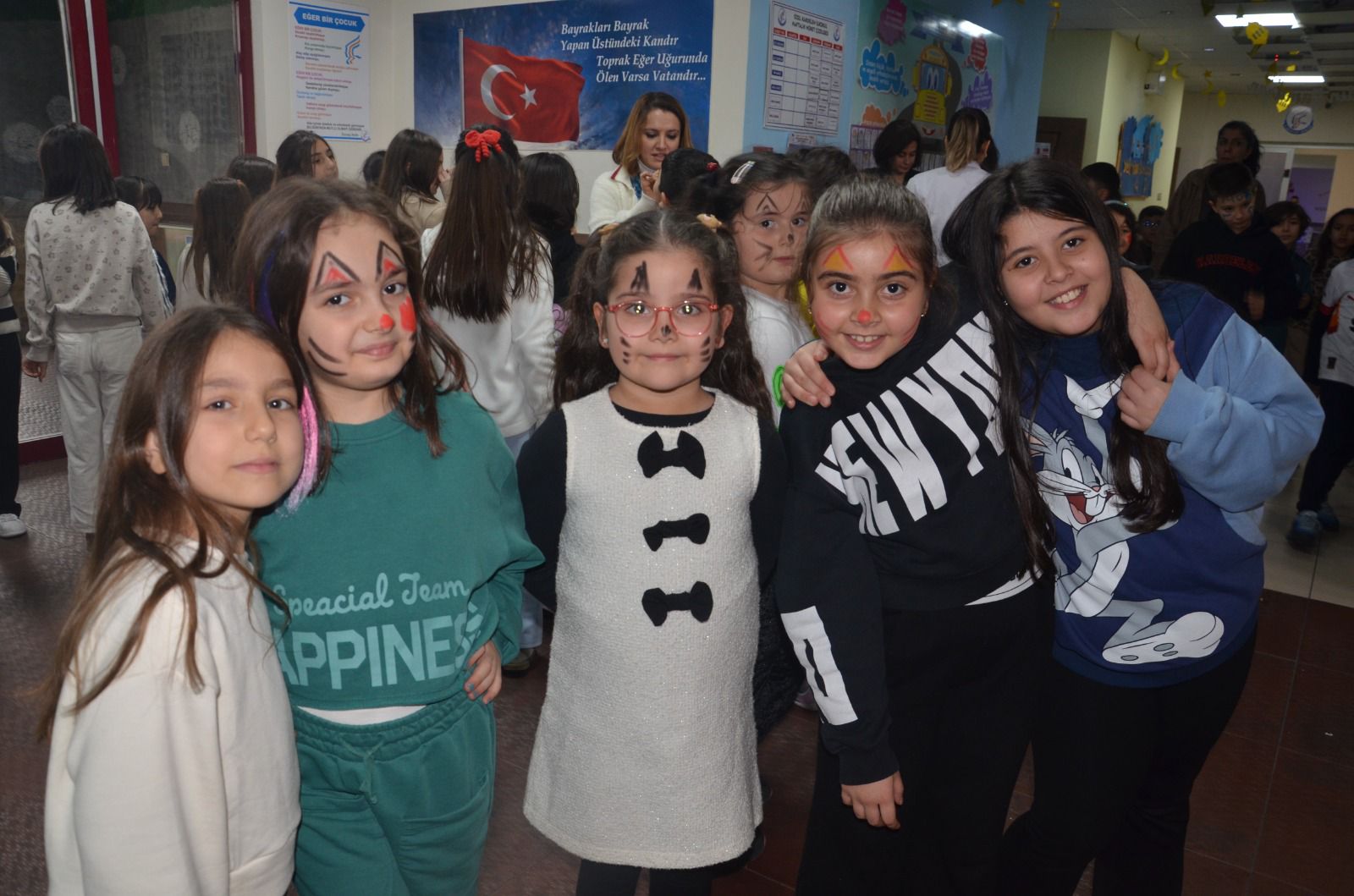 Etkinlik sonunda sınıflarına geçen öğrenciler için yüz boyama etkinliği düzenlendi ve çeşitli ikramlarda bulunuldu.