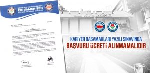 Eğitim-Bir-Sen Nevşehir Şube Başkanlığından yapılan açıklamada kariyer basamakları yazılı sınavında başvuru ücreti alınmaması gerektiği belirtildi.