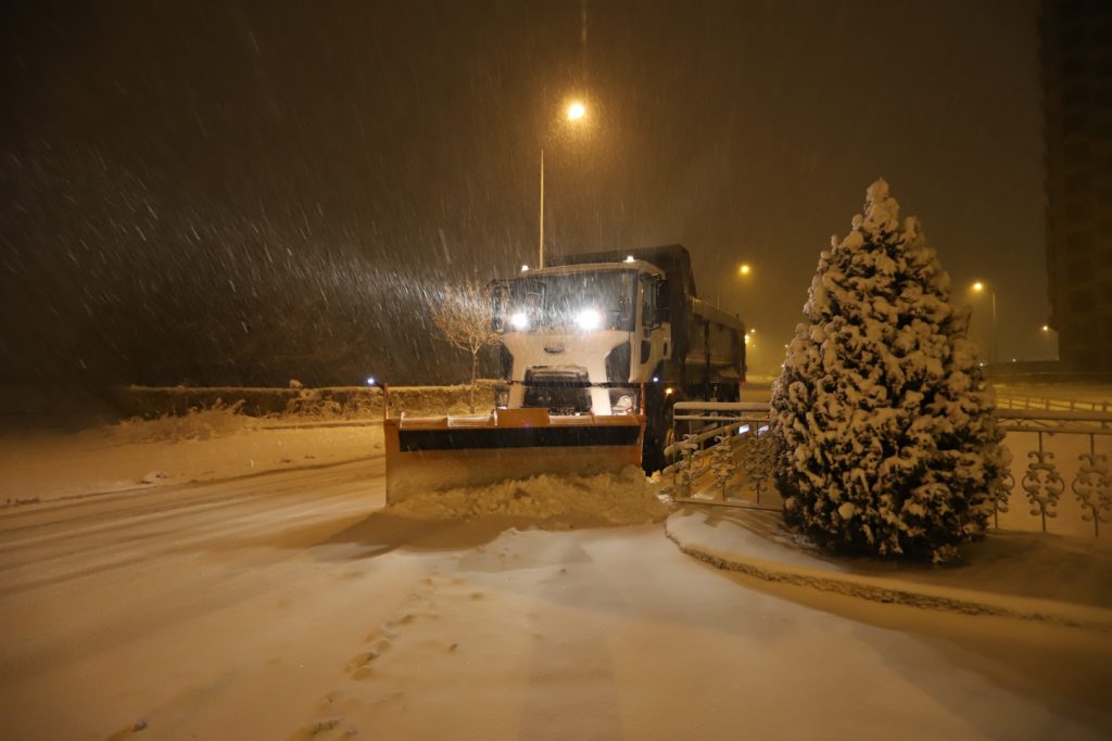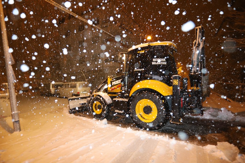 Nevşehir’de akşam saatlerinde başlayan kar yağışının ardından teyakkuza geçen Nevşehir Belediyesi Fen İşleri Müdürlüğü’ne bağlı karla mücadele ekipleri çalışmalarını sürdürüyor.