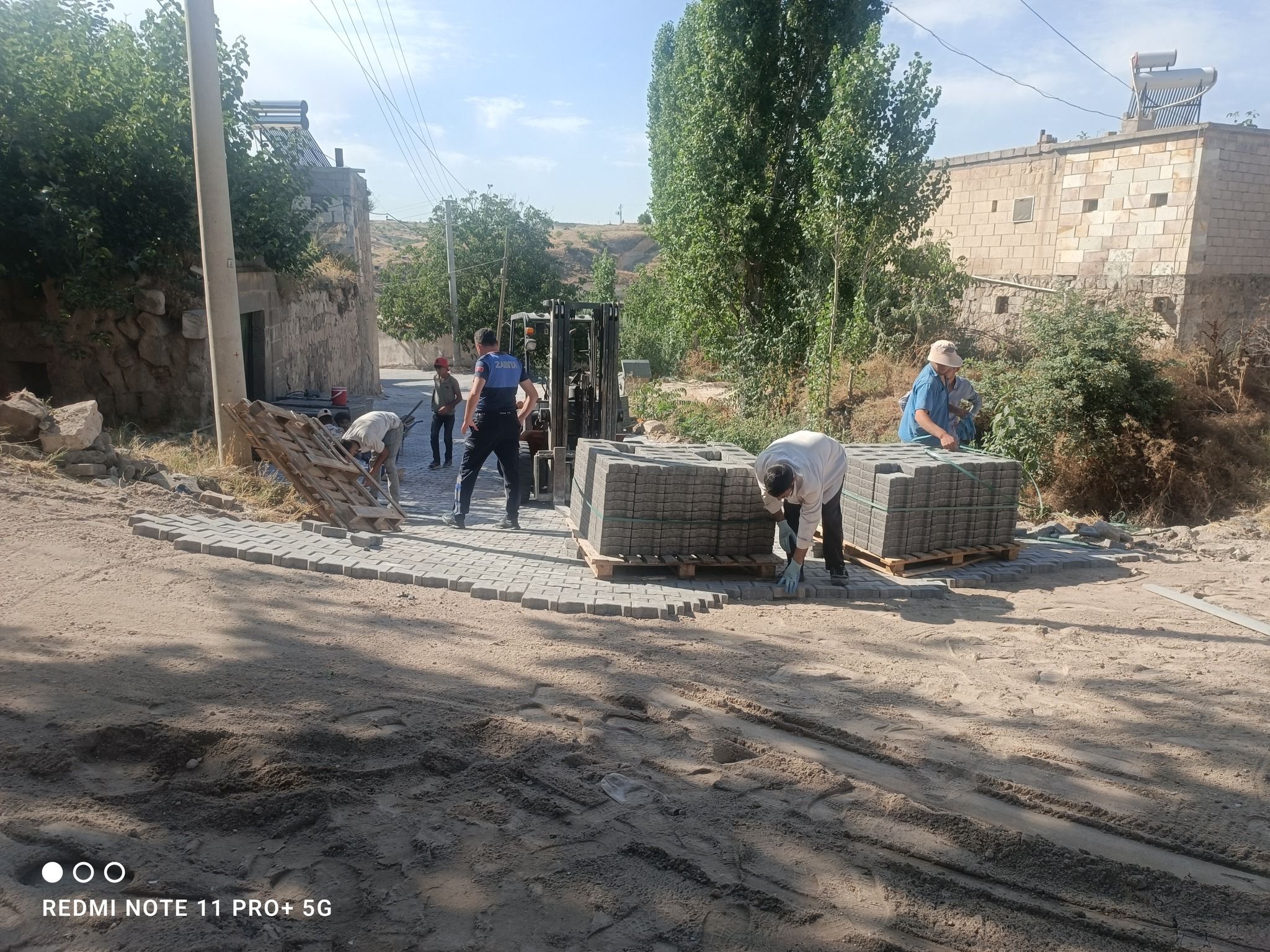 Kasabada Aşağı Mahalledeki Soğukpınar ve Çeşme caddeleri ile Bahçeler sokağın altyapı çalışmalarının ardından parke taş döşemesine başlandı.