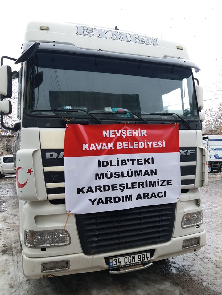 Nevşehir merkeze bağlı Kavak Kasabasından İdlib’e 3 tır yardım malzemesi gönderildi.