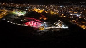 29 Ekim Cumhuriyet Bayramı ve Cumhuriyetimizin 101. yılı dolayısıyla Nevşehir’in simgelerinden biri olan tarihi Kayaşehir, kırmızı beyaz renge büründü.