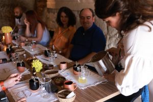 Atölyede, kaya oyma mekânların mistik atmosferine uyum sağlayan tamamen doğal içerikler tercih edildi. Kapadokya’ya özgü çömlek kaplar içinde hazırlanan mumlarda, balmumu, bitkisel mumlar ve Anadolu coğrafyasına ait bitkiler kullanıldı. Bu özel karışım, hem bölgenin tarihsel kimliğine hem de doğayla uyumlu üretim anlayışına vurgu yaptı.