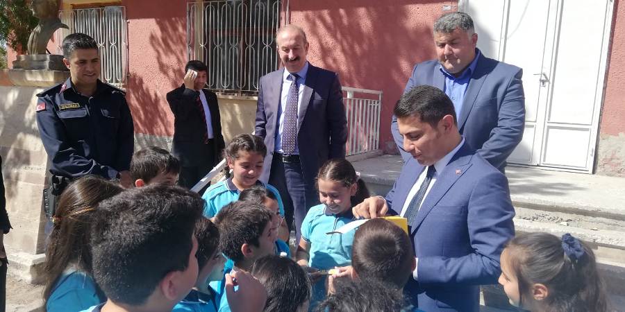 İlköğretim okulu ziyaretinde öğrencilerle yakından ilgilenen Kaymakam okul yönetiminden gerekli bilgileri aldı.
