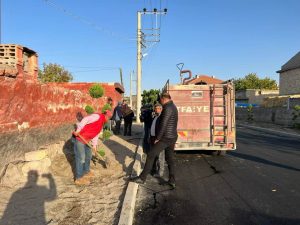 Kaymaklı kasabasında asfalt ve kaldırım düzenlemelerinin ardından şimdi sıra peyzaj çalışmalarında.