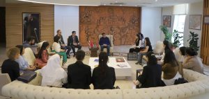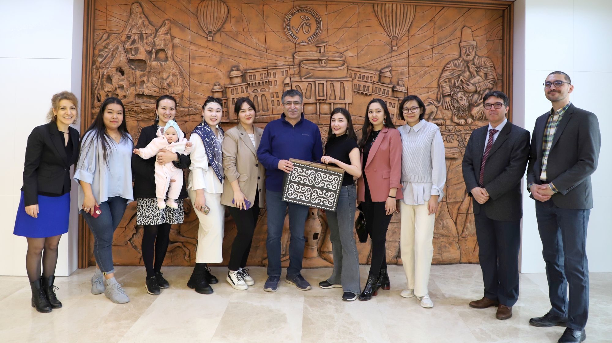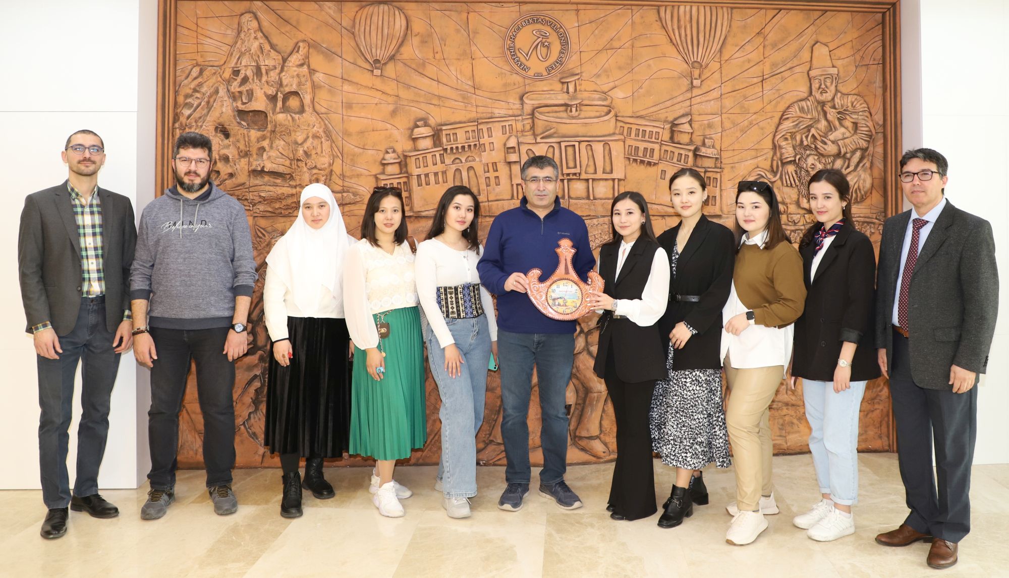 Kazak Ulusal Kızlar Pedagoji Üniversitesi’nden Nevşehir Hacı Bektaş Veli Üniversitesi (NEVÜ)’ye staj yapmak üzere gelen 14 kişilik yüksek lisans öğrenci grubu, NEVÜ Rektörü Prof. Dr. Semih Aktekin’i ziyaret etti.