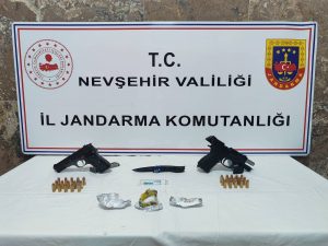 Edinilen bilgilere göre; Nevşehir İl Jandarma Komutanlığı J.Suç Araştırma Timleri (JASAT), Ürgüp İlçe J.K.lığı ve KOM Ş.Md.lüğü ekiplerince emniyet, asayiş ve kamu düzeninin sağlanması kapsamında, 12 Mart 2025 tarihinde aranan şahısların yakalanması maksadıyla icra edilen faaliyet sonucunda; hakkında “Kullanmak İçin Uyuşturucu veya Uyarıcı Madde Satın Almak, Kabul Etmek, Bulundurmak ve Kullanmak” suçundan toplam “3 Yıl 4 Ay” kesinleşmiş hapis cezası ile yakalama kararı bulunan M.K. isimli şahıs ile “Cebir, Tehdit veya Hile Kullanarak Kişiyi Hürriyetinden Yoksun Kılma” suçundan toplam “6 Yıl 3 Ay” kesinleşmiş hapis cezası ile yakalama kararı bulunan O.A. isimli şahıs saklandığı evde yakalanmış, şahısların evinde yapılan aramada (2) Adet 9 mm Tabanca, (2) Adet 9 mm Tabanca Şarjörü, (30) Adet 9 mm. Tabanca fişeği, (17) Gr Metafetamin ve (1) Adet Uyuşturucu Madde Kullanma Aparatı ele geçirilmiştir. Yakalanan şahıslar çıkarıldığı adli makamlarca tutuklanarak Nevşehir E Tipi Kapalı Ceza İnfaz Kurumuna teslim edildi.