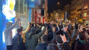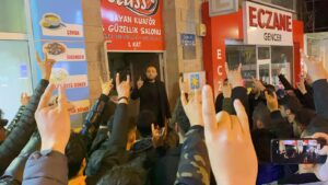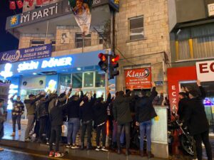 İYİ Parti İl Başkanı Ömer Ay’ın Milliyetçi Hareket Partisi’ne yönelik ithamları sonrası Nevşehir’de toplanan kalabalık, İYİ Parti hizmet binası önünde bozkurt çekip sloganlar attı.