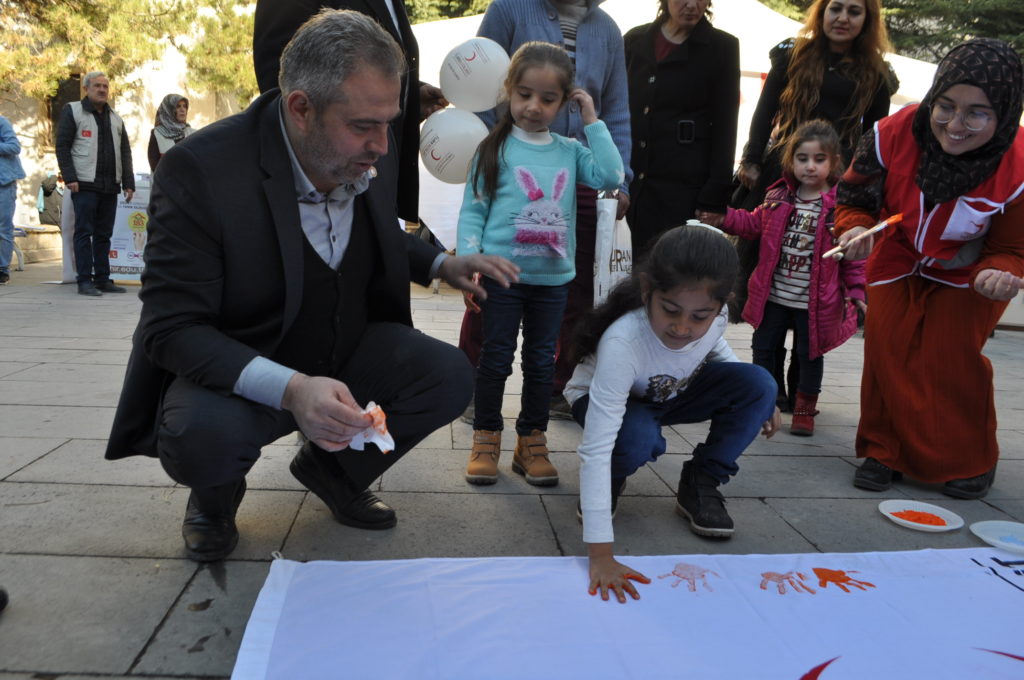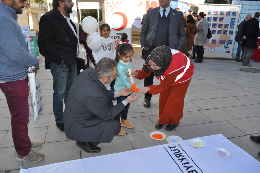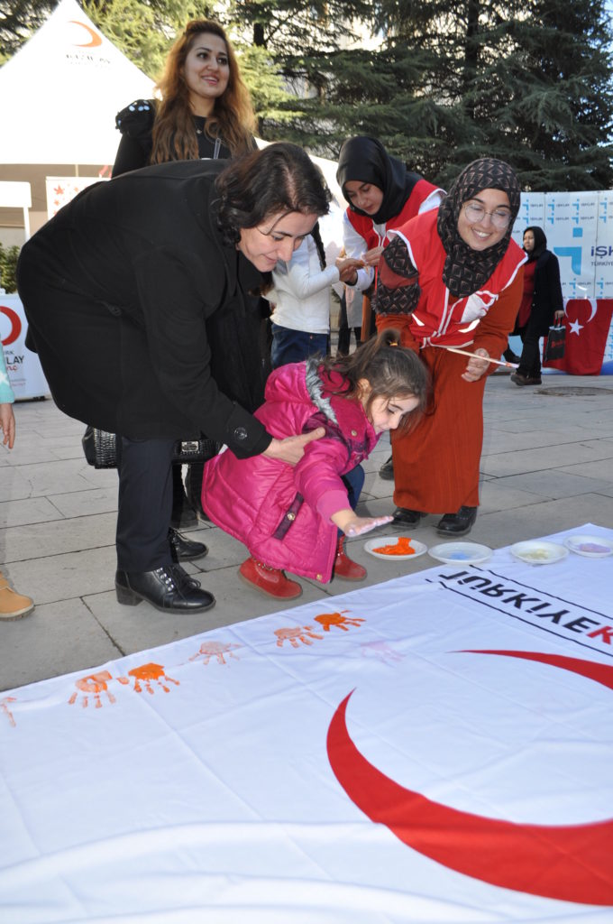 İl Göç idaresi müdürlüğü önünde çadır kuran, Göçmen ve sığınmacılarla ilgili Kızılay’ın çalışmalarını da anlatan Kızılay Nevşehir Şube Başkanlığının etkinliklerine miniklerde ilgi gösterdi.