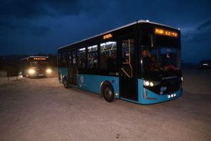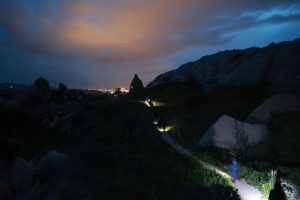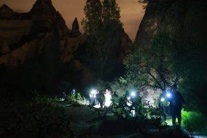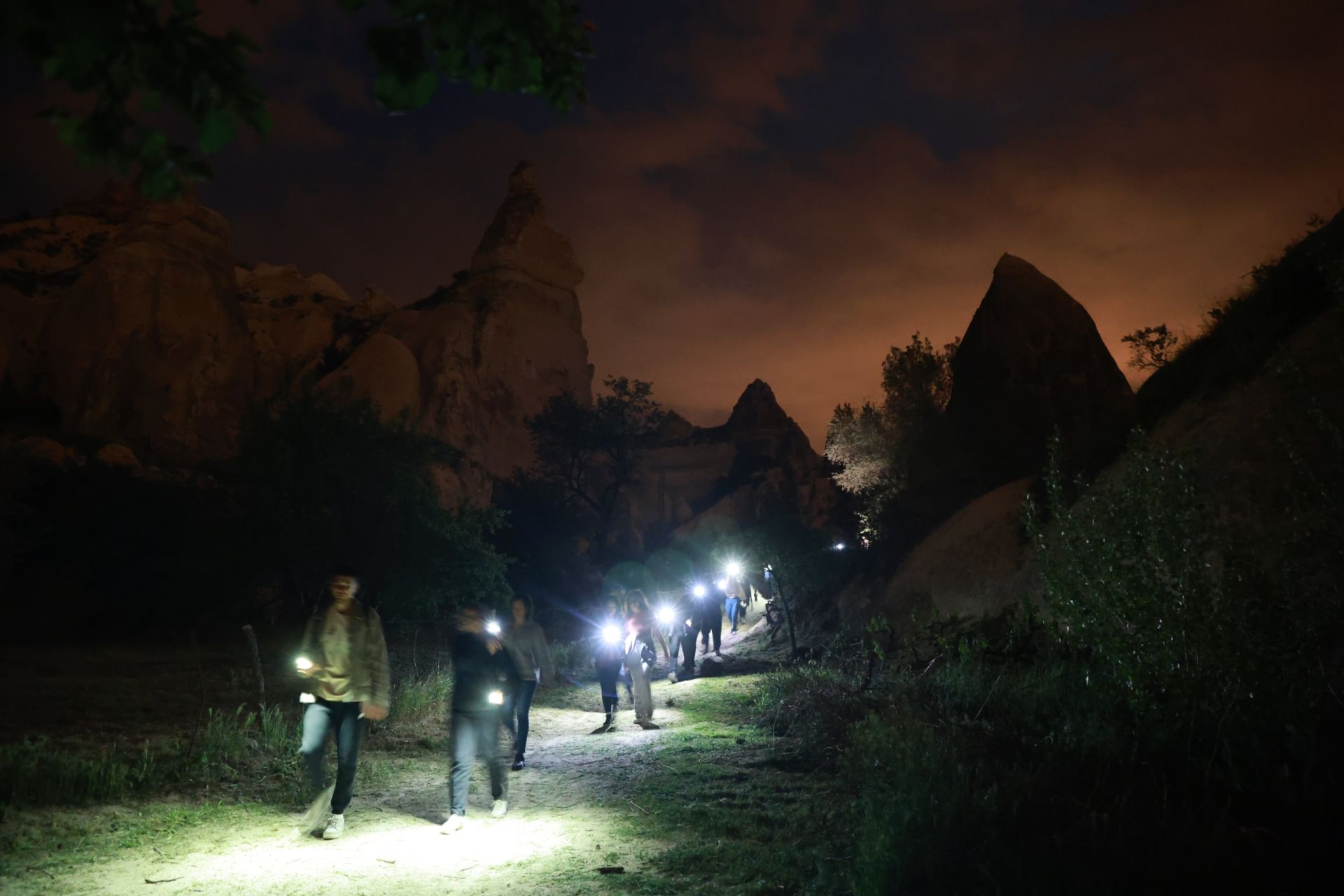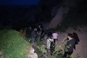 Başvuruların geçtiğimiz hafta içerisinde tamamlandığı Dolunay Yürüyüşü için Paşa Konağı önünden ücretsiz servis aracı kaldırıldı. Servis araçlarıyla Ortahisar’da ki Kızılçukur Vadisi’ne gelen katılımcılar buradan Çavuşin Köyü’ne yürüdü.