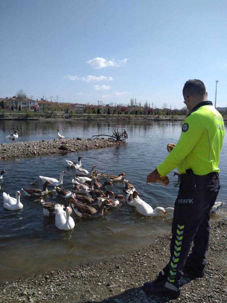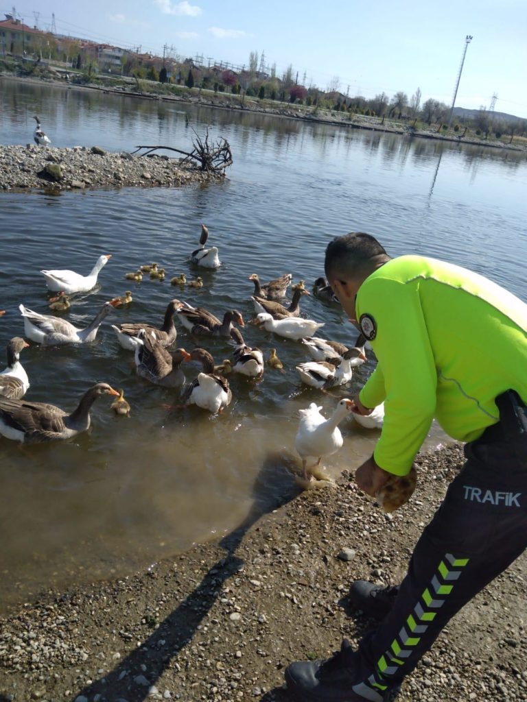 Korona virüs ile mücadele kapsamında ilçede vatandaşların evde kalmalarının ardından ise ırmakta bulunan kazları Avanos Belediyesi ekipleri beslemeye başlarken hafta sonu boş kalan ilçede ırmakta bulunan kazları bu kez polisler besledi.