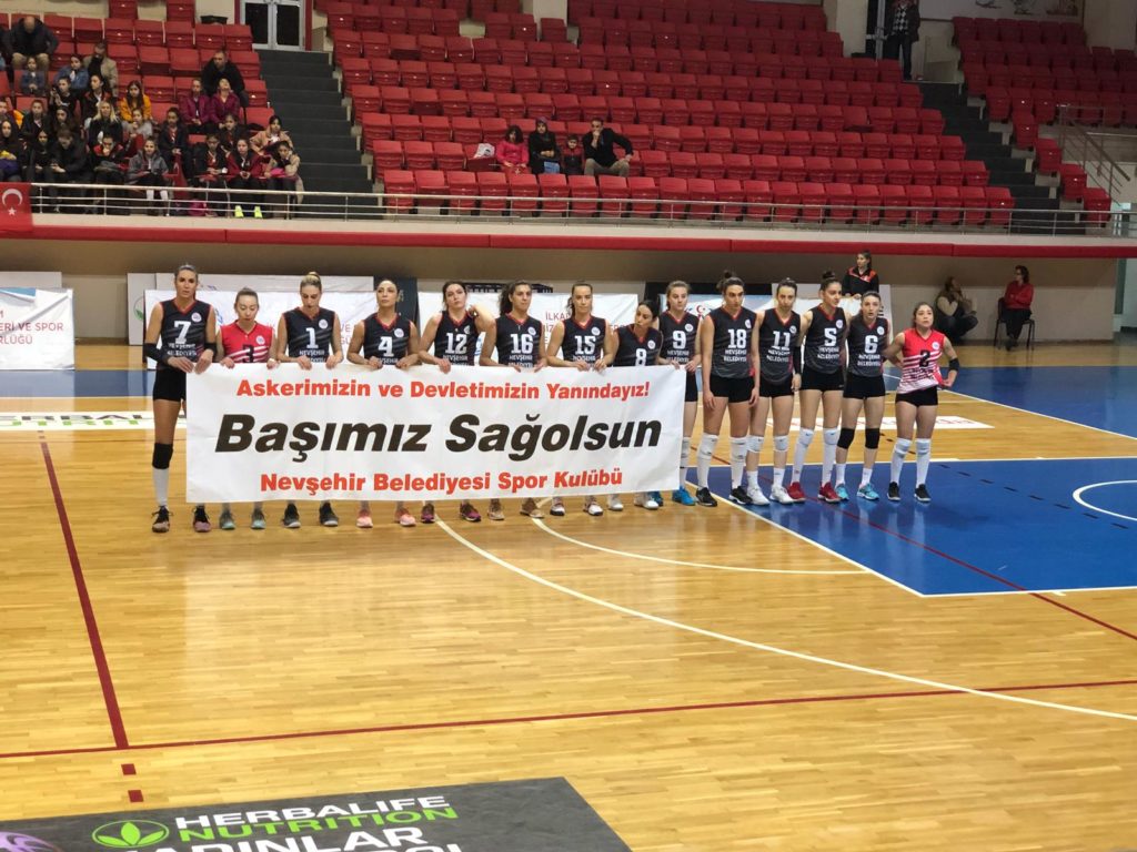 Nevşehir Belediye Spor Kadın Voleybol Takımı ligin 21. Haftasında Samsun deplasmanında Samsun BŞB Anakent ile karşılaştı. Samsun Mustafa Dağıstanlı Spor Salonu’nda oynanan maça Nevşehir Belediye Spor’lu voleybolcular ‘Askerimizin ve Devletimizin Yanındayız. Başımız Sağolsun’ pankartıyla çıktı.