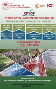 Tarım ve Orman İl Müdürü Özgür Memiş, Kırsal Kalkınma Destekleri Kapsamında Tarıma Dayalı Yatırımların Desteklenmesi Hakkındaki 2023/51 no’lu Tebliğin yürürlüğe girerek başvuruların başladığını söyledi ve destekleme müracaatlarının 19/02/2024 tarihine kadar yapılabileceğini bildirdi.