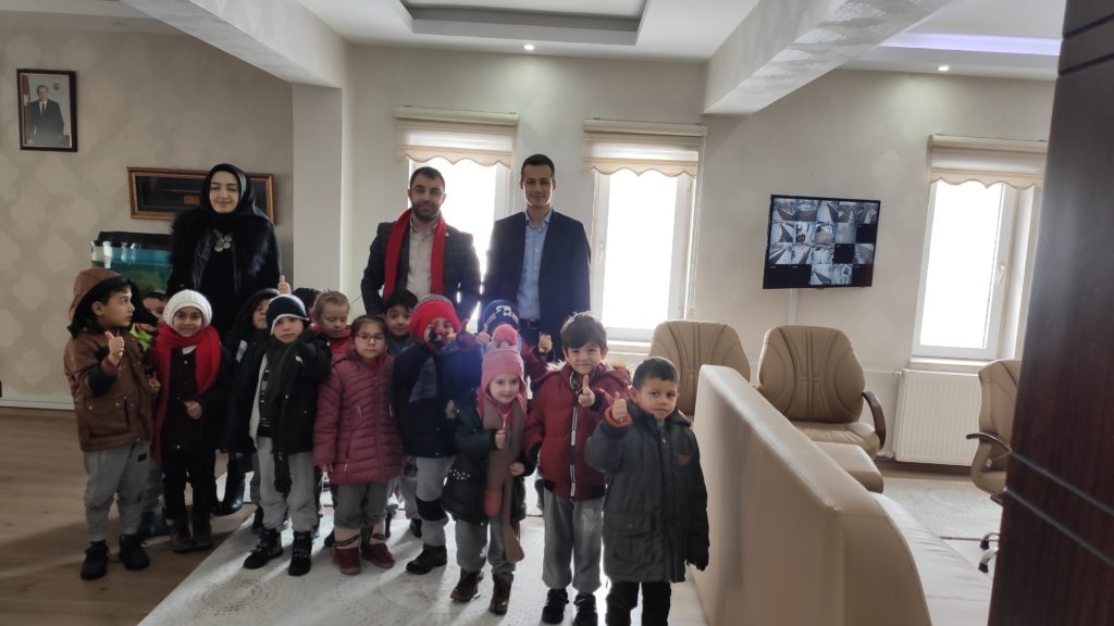 Karapınar Ana Sınıfı öğrencilerini makamında kabul eden, yaptıkları bu etkinlikten dolayı kendilerine teşekkür eden Karapınar Belediye Başkanı Yasin Güneş,