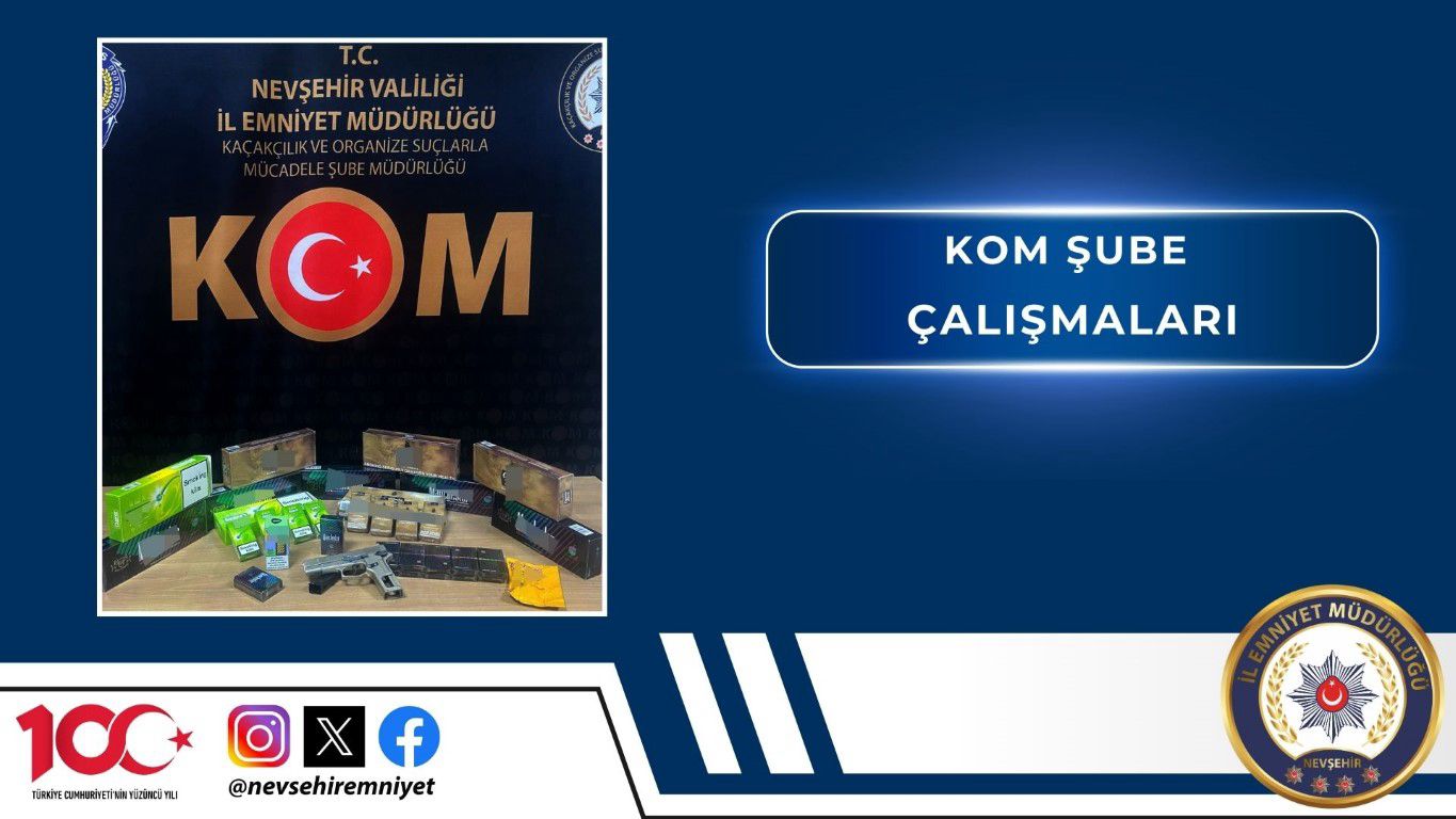 KOM Şube Müdürlüğü ekiplerince yapılan çalışmalar paylaşıldı. Yapılan 2 çalışmada, 850 adet tütün ve tütün mamulü bandrol, 101 paket kaçak sigara, 1 adet elektronik sigara, 1 adet puro, 1 adet kuru sıkı tabanca ele geçirilirken 2 şahıs hakkında gerekli işlemler yapıldı.