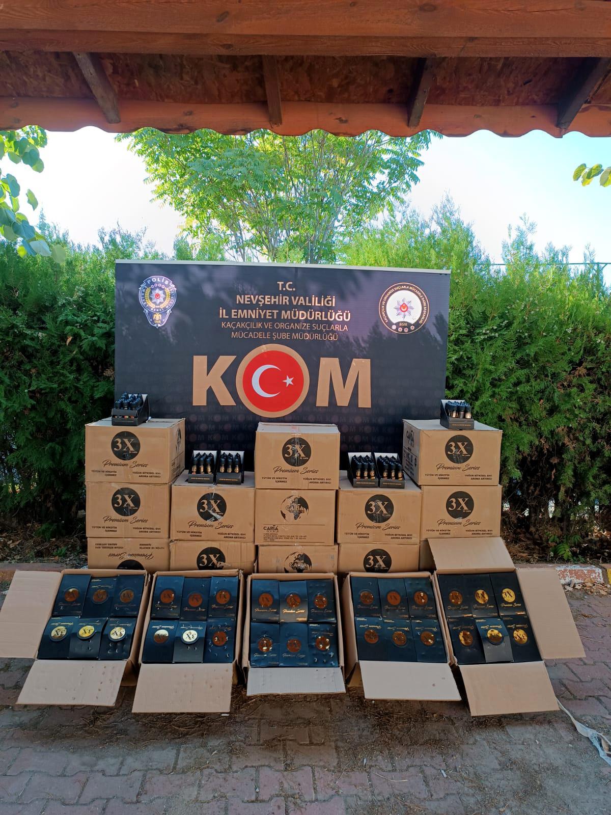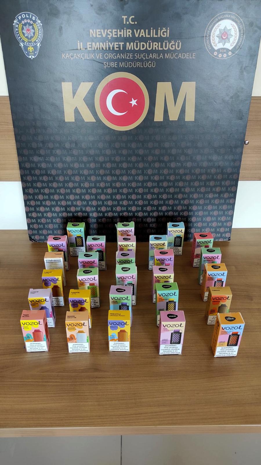 KOM Şube Müdürlüğü ekiplerince son bir hafta içerisinde yapılan 3 çalışmada 28 adet elektronik sigara, 4.230 adet elektronik sigara likiti, 21.720 litre kaçak akaryakıt olduğu değerlendirilen sıvı ele geçirilmiş, 3 şahıs hakkında gerekli işlemler yapılmıştır.