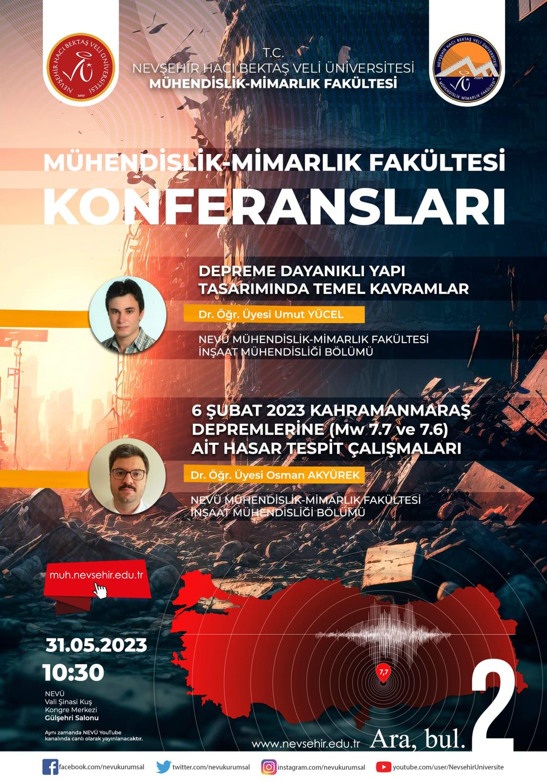 Nevşehir Hacı Bektaş Veli Üniversitesi Mühendislik Mimarlık Fakültesi Konferanslarının 2.si, 31.05.2023 tarihinde saat 10:30‘da gerçekleştirilecek.