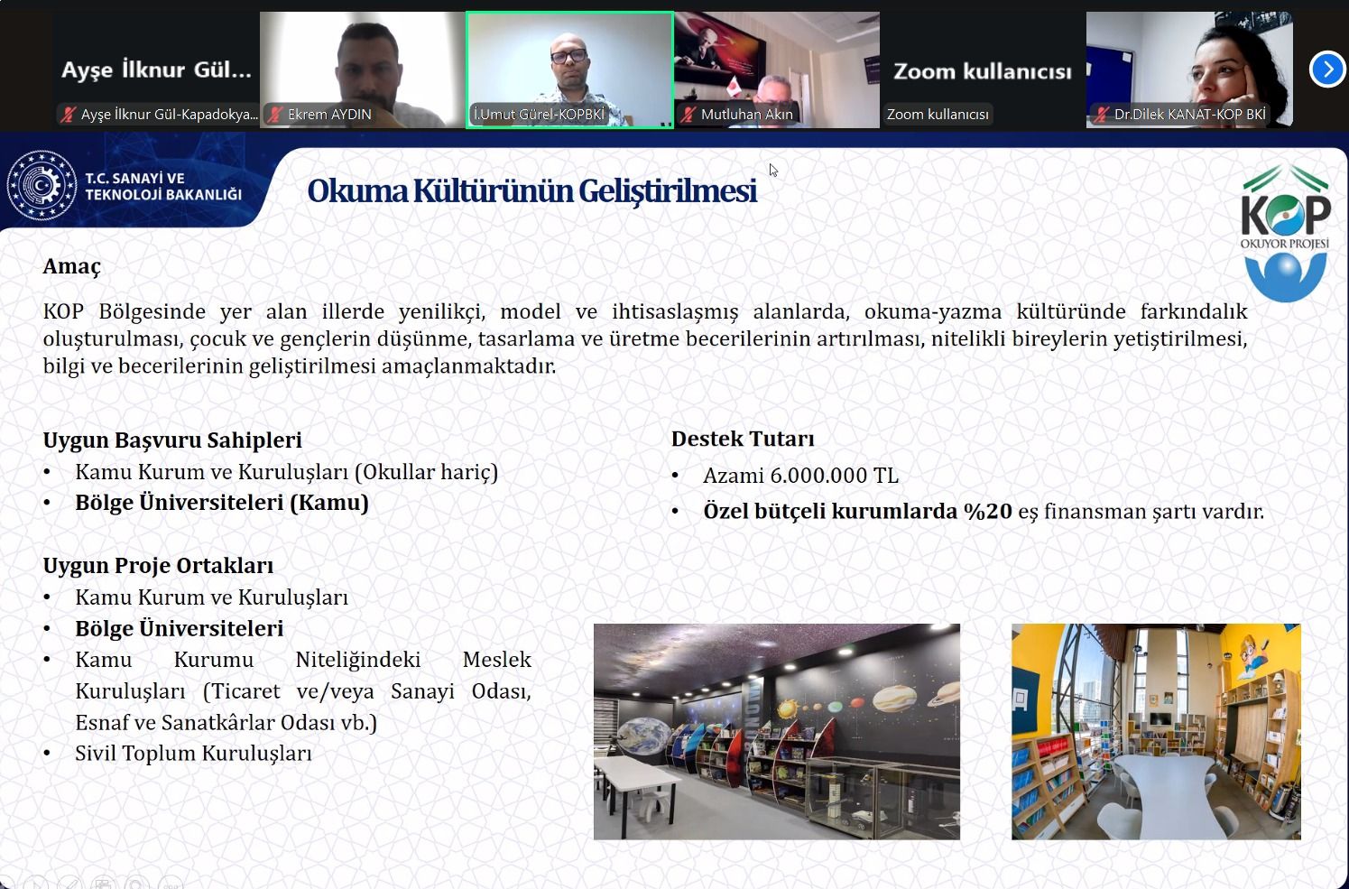 Nevşehir Hacı Bektaş Veli Üniversitesi (NEVÜ) Teknoloji Transfer Ofisi tarafından düzenlenen “KOP Projeleri Bilgi Günü” etkinliği çevrim içi olarak gerçekleştirildi. T.C. Sanayi ve Teknoloji Bakanlığı tarafından desteklenen Konya Ovası Projeleri (KOP) hakkında akademisyenlere ve araştırmacılara bilgi sunuldu.