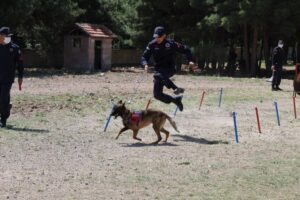 Nevşehir At ve Köpek Eğitim Merkezi (JAKEM) Komutanlığında görev köpeği ve kullanıcıları kondisyon parkurunda yarıştı.