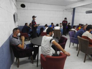 Jandarma ekipleri tarafından yapılan operasyon sonrasında suçüstü yakalanan 3’ü kadın 43 kişi hakkında kumar oynamaktan dolayı toplam 52 bin 675 lira idari para cezasının yanı sıra korona virüs tedbirleri kapsamında maske ve sosyal mesafe kuralına uymamaktan toplam 136 bin 540 lira ceza yazıldı.
