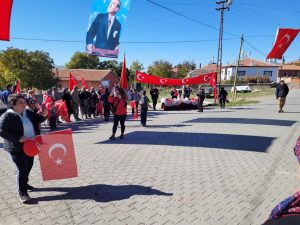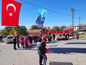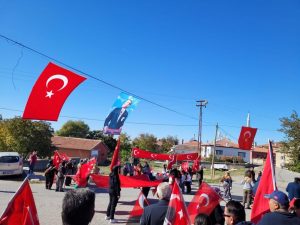 Özellikle kadınların ön saflarda bulunduğu köylüler bir araya gelerek ellerinde Türk bayraklarıyla köy meydanını turladı. Türk bayrağı ve Atatürk posterleriyle süslenen köy meydanı adeta bayram yerine döndü.