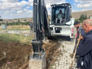 Özel ekipmanlarla arızanın meydana geldiği yeri tespit eden ekipler, ilk olarak iş makinesiyle toprağı kazıyor.