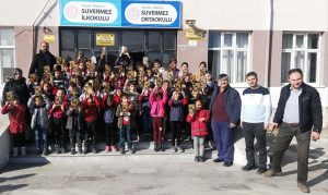 Suvermez Köyü İlkokulu ve Ortaokulu öğrencilerine yazar Osman Aytekin’in kitabını hediye etti.