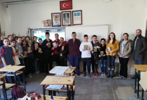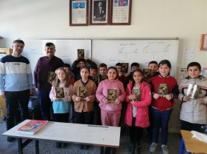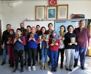 Yazar Aytekin öğrencilere kitap hediye eden Turizimci Sefa Yıldırım’a, Okul Müdürü Hakan Köse’ye, idareci ve öğretmenlere teşekkür etti.